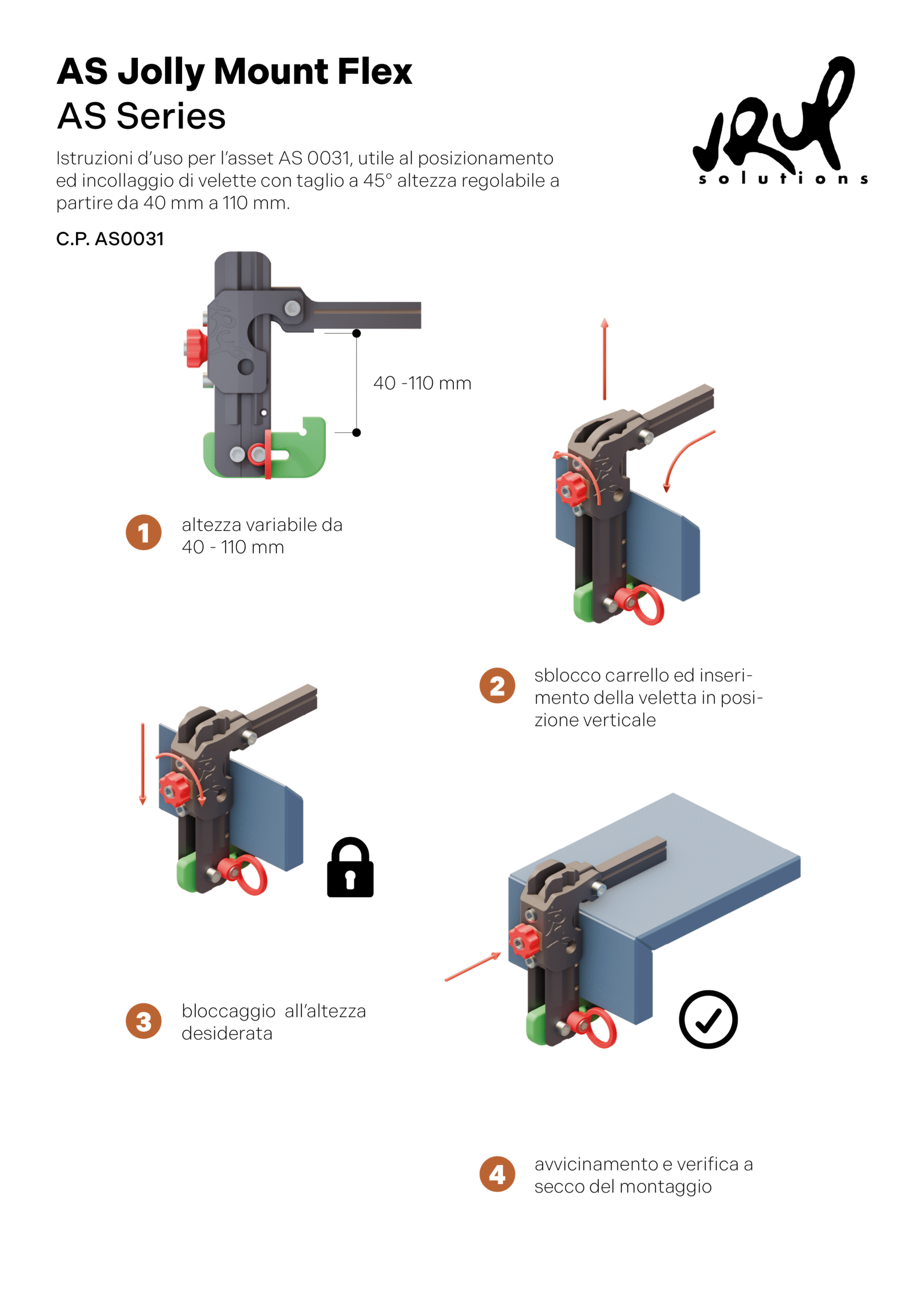 AS series è un insieme di sistemi di fissaggio utile al posizionamento ed incollaggio di velette con taglio a 45°.