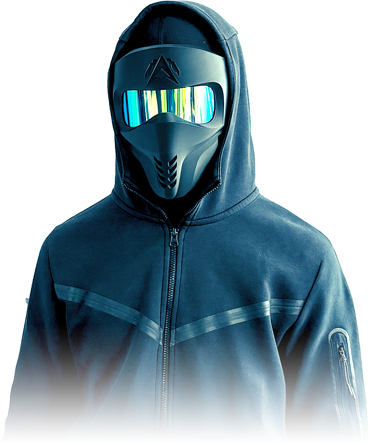 La maschera viene pensata per garantire anonimato, vestibilità e competitività. Ha un design minimalista e futuristico, che prende ispirazione da universi come quelli sci-fi e steam punk, dal carattere sospeso, intimidatorio e predatorio. Una forma spettrale e tagliente dalla vista omnidirezionale.